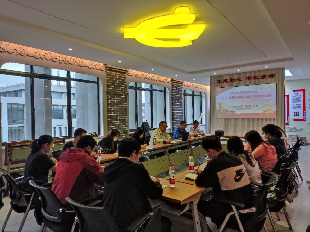 最后,赵斌副校长肯定了学院现阶段的发展,同时对学院未来建设提出了新要求,在学科建设上要交叉融合,教师们要继续加强业务能力,学校也会给予学院更多支持,把伟大建党精神落实到工作中去,扎扎实实走好每一步。