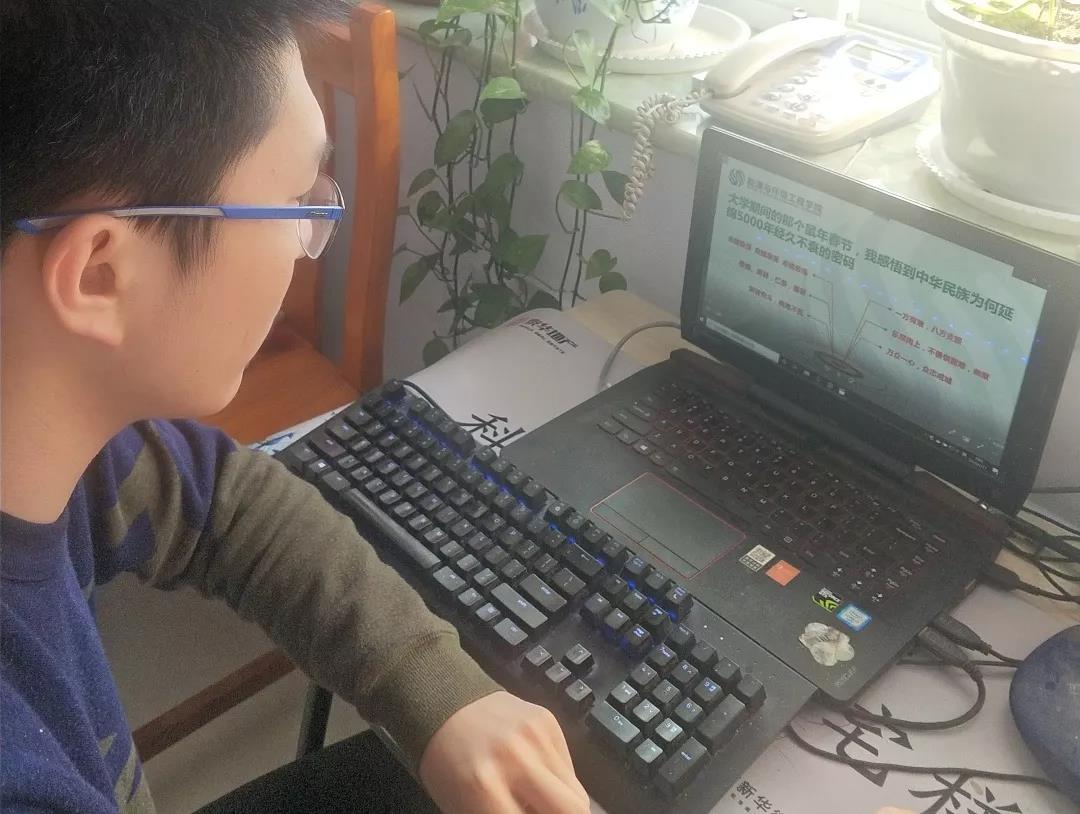 我严肃而又认真地收看了开学第一课。接受学校的教育后,我深感这一方安然学习净土的来之不易。停课不停学,考验的是我们大学生自控能力、规划能力以及家国情怀。书记的话我铭记在心,若干年后,我们也会为2020年自己的成长而感到自豪和骄傲。“众志成城克时艰,勤奋学习做贡献”。正如商书记所说,中华民族有着自己延绵5000年经久不衰的密码。乐观向上,不畏惧困难,敢于面对新模式下的困难而勤奋学习,为国家做出属于自己的贡献。无哗战士衔枚勇,下笔春蚕食叶声!