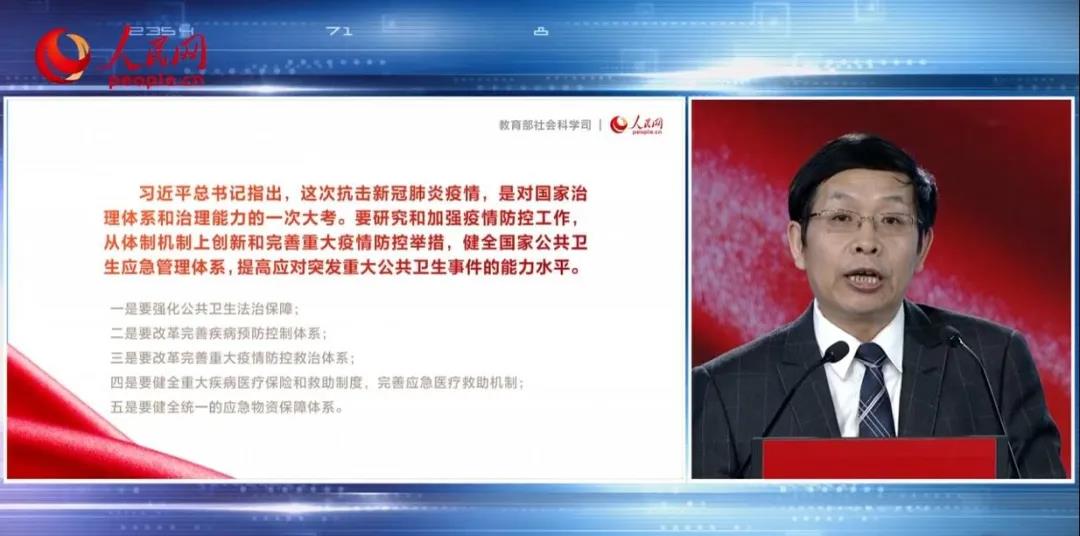 3月9日的下午,我收看了教育部社会科学司,人民网联合举办的“全国大学生同上一堂疫情防控思政大课”。课堂中的四位教授向我们解读了以习近平同志为核心的党中央关于疫情防控的决策部署,分析了中国抗疫彰显的中国共产党领导和中国特色社会主义制度的显著优势。