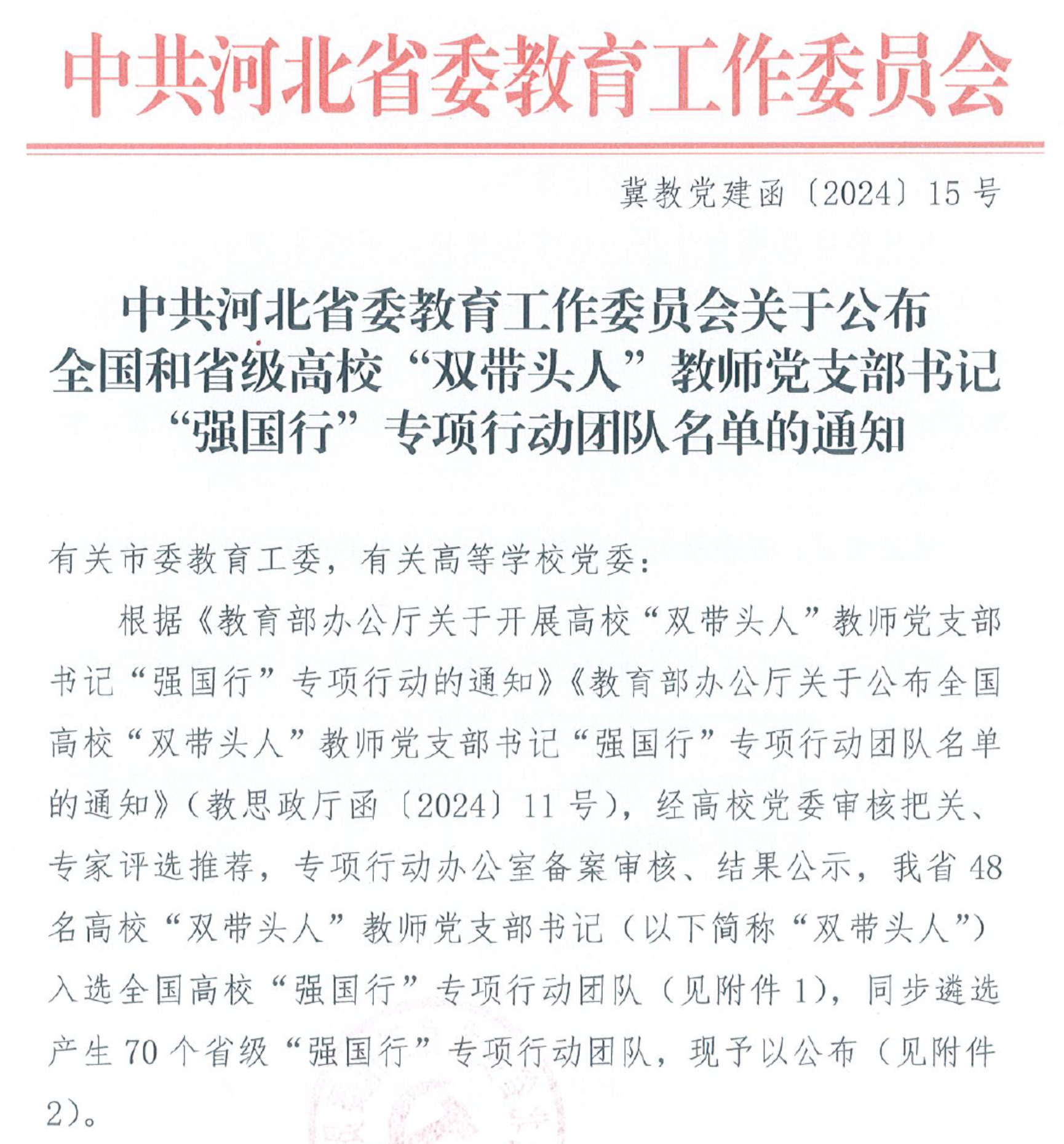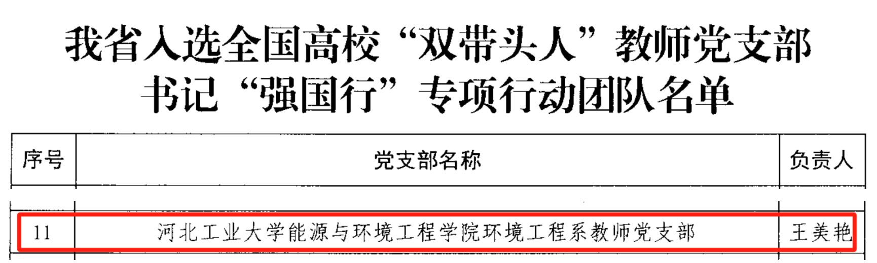 近日,教育部办公厅和河北省委教育工作委员会发布了《关于全国高校“双带头人”教师党支部书记“强国行”专项行动团队名单的通知》,SM调教 SM调教 环境工程系教师党支部成功入选全国高校“双带头人”教师党支部书记“强国行”专项行动团队。