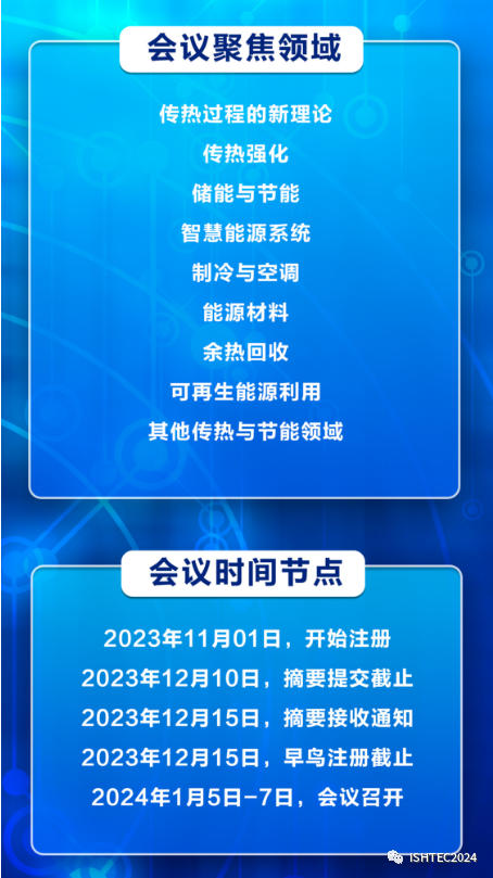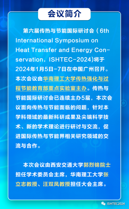 会议征稿 | 第六届传热与节能国际研讨会(ISHTEC-2024)