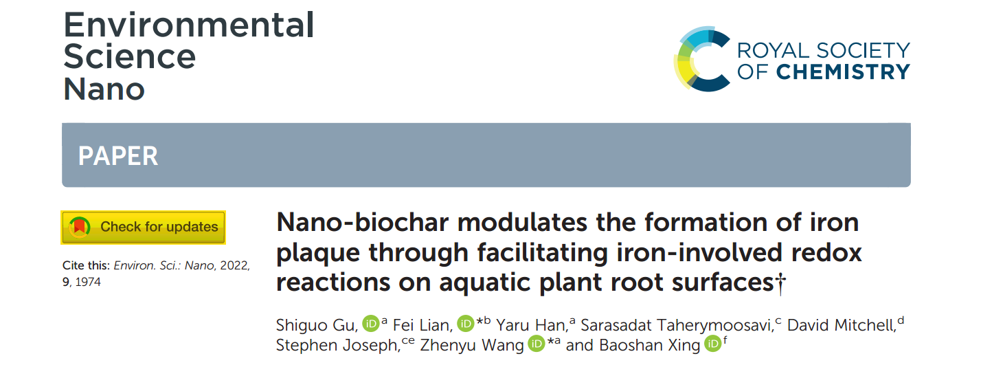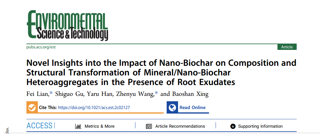 近日,SM调教 廉菲教授课题组在纳米生物炭的环境行为及其生态功能领域取得重要研究进展,相关成果分别以《Novel insights into the impact of nano-biochar on composition and structural transformation of mineral/nano-biochar heteroaggregates in the presence of root exudates》《Nano-biochar modulates the formation of iron plaque through facilitating iron-involved redox reactions on aquatic plant root surfaces》为题在线发表在环境领域著名期刊Environmental Science and Technology(IF: 9.028)和Environmental Science: Nano(IF: 8.131)。同时,第二篇论文被遴选为Environmental Science: Nano期刊的底封面论文(back cover)。该系列文章均以SM调教 为第一署名单位,廉菲教授分别为第一和共同通讯作者。