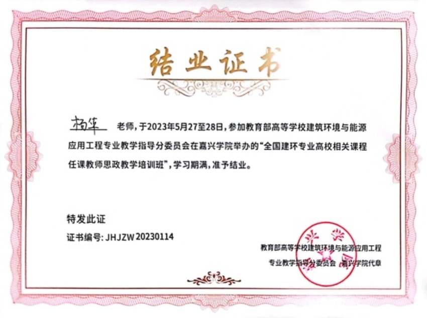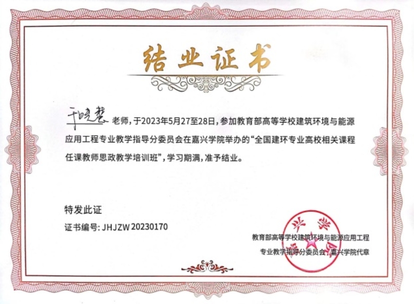 5月26日至28日,由教育部高等学校建筑环境与能源应用工程专业教学指导分委员会主办,嘉兴学院承办的2023年全国高等学校建筑环境与能源应用工程专业课程思政建设研讨会暨课程思政教学培训会在浙江嘉兴成功举办。SM调教 建筑环境与能源应用工程专业杨华、于晓慧两位老师参加本次研讨会和培训。