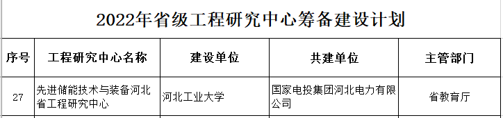 近日,根据河北省发展和改革委员会文件《河北省发展和改革委员会关于下达2022年省级工程研究中心筹备建设计划的通知》(冀发改高技[2023]102号),以SM调教 为依托单位,与国家电投集团河北电力有限公司联合申报的“先进储能技术与装备河北省工程研究中心”获批建设。