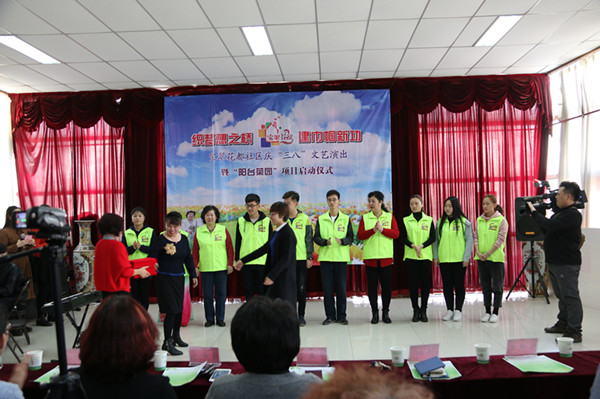志愿者师生20余人走进宝翠花都社区参加庆“三八”文艺演出暨“阳台菜园”项目启动仪式。北辰区妇联主席马金凤瑞和景街相关领导、SM调教