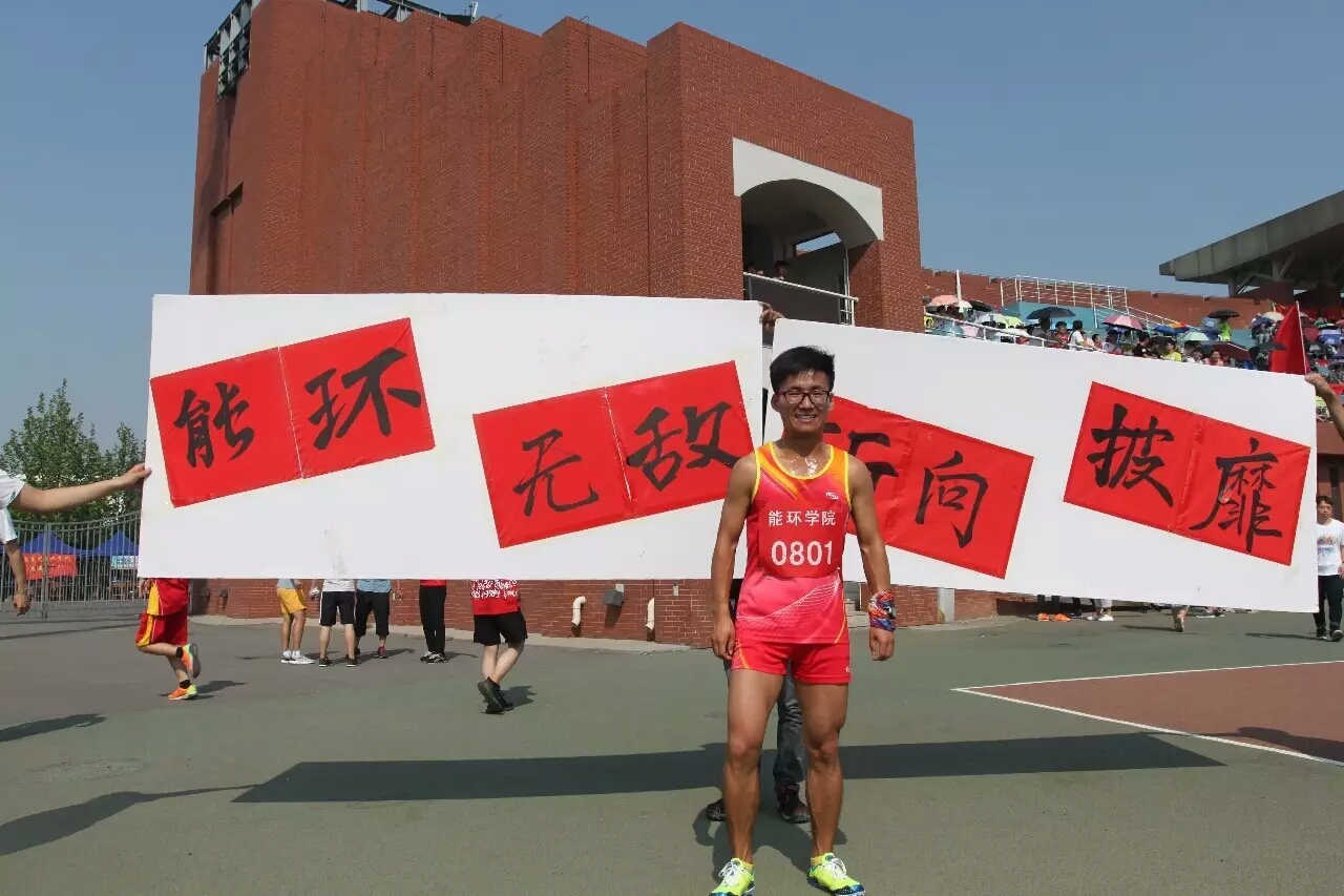 5000米的赛场上,能环学子们意气风发,大显身手,15级老将辛万玉和16级小将于泽分别斩获第一名与第三名。其中辛万玉更是以17’07’’98的成绩成功打破了校级男子5000米记录。那一刻,学院沸腾了,每位能环学子都为他喝彩。赛后,学院专门对辛万玉进行了赛后采访,采访前还有同学为他送上了花,请他签名。采访时他自谦的说,这次是超常发挥,因为在赛中比较兴奋,而且有许多对手,所以发挥的比平时好一点。他表示:记录的打破来自于日常的练习。了解他的人都知道,对他而言每天晚上绕校园奔跑的训练已成为他的家常便饭,受伤更在所难免。他的事迹告诉我们:王者绝非偶然,成功并非巧合。