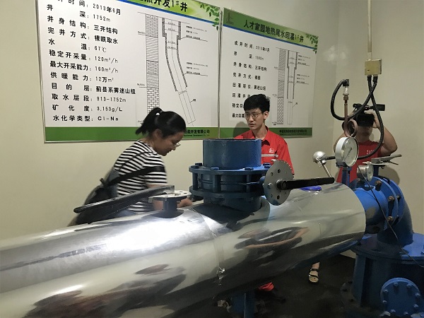雄县地热资源拥有“面积广、储量大、埋藏浅、温度高、水质优”的五大特点,由于前期无序开采,造成局部地表环境污染,地热储量遭到一定破坏。实践队成员多次与雄县国土局地热办工作人员交流,对雄安新区地热能储量及当下利用形式有了较为清楚的认识,并且在于相关部门领导交流过程中,实践队员了解到现如今地热资源已基本实现合理可持续利用,地热水采取“取热不取水”,地热水回灌技术已经趋于成熟。