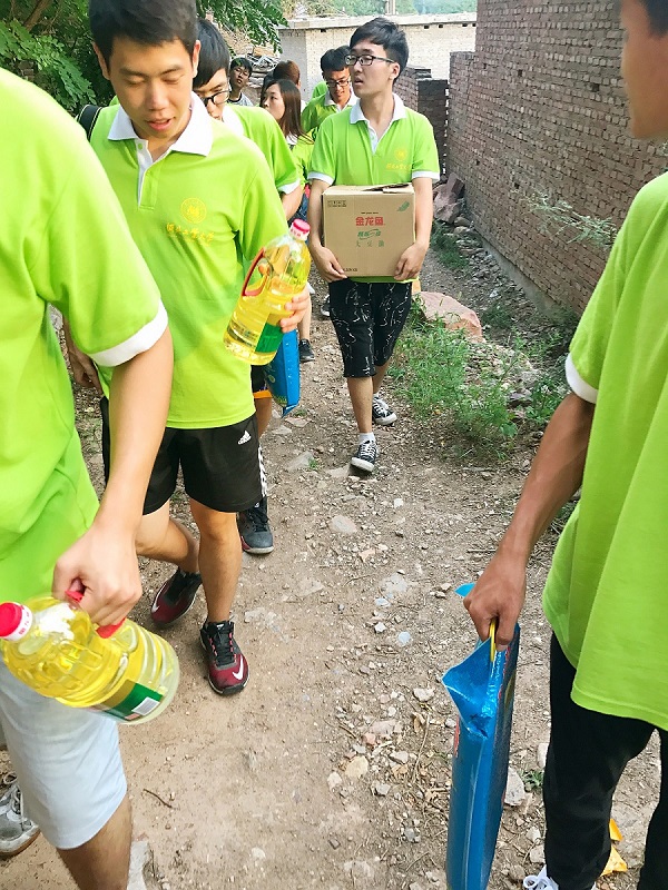 SM调教 的同学带着物资看望了学院多年来一直资助的冯相博一家,并和徐水爱心人士一起,顶着烈日,走街串巷,深入了解贫困户家中情况,将助困物资送到他们手里。