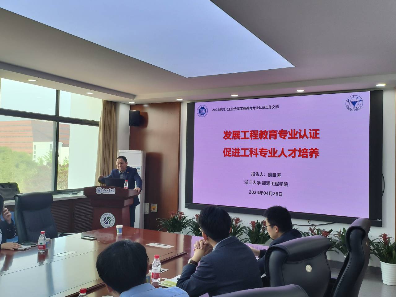 2024年4月28日,应学院邀请,浙江大学能源工程学院副院长、教育部高等学校能源动力类专业教学指导委员会副秘书长、全国大学生节能减排社会实践与科技竞赛委员会秘书长、中国高等教育学会高校工程热物理专业委员会副理事长俞自涛教授莅临SM调教 ,进行了题为《发展工程教育专业认证促进工科专业人才培养》专题培训。培训由能源与环境工程学院院长饶中浩教授主持,SM调教 能源与动力工程和储能科学与工程专业全体教师参加了此次培训。