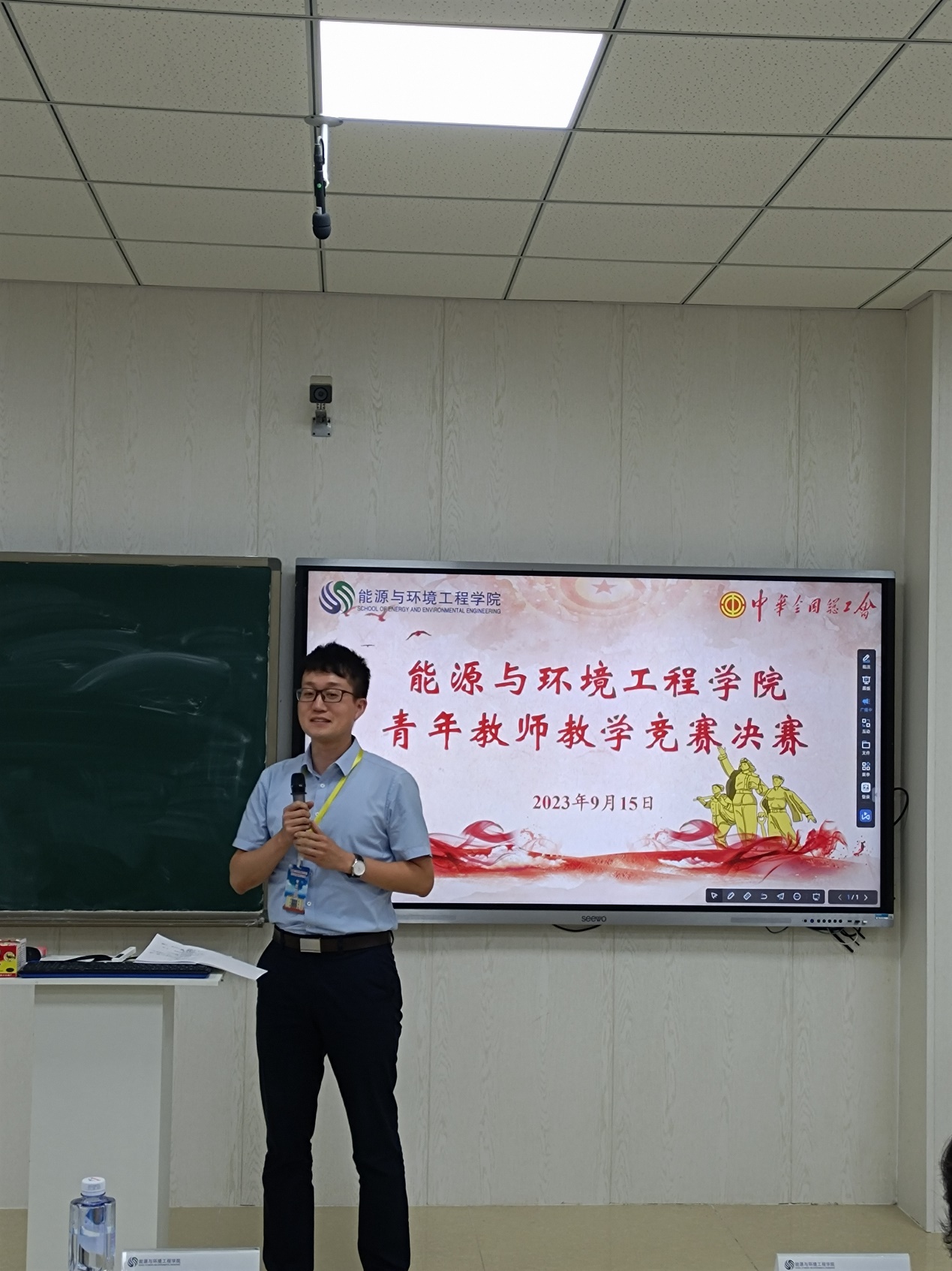 为大力弘扬劳模精神、劳动精神、工匠精神,进一步激发青年教师更新教育理念和掌握现代教学方法的热情,着力提升思想政治素质和教学能力水平。按照校工会通知文件精神“SM调教 2023年度青年教师教学竞赛决赛”暨“SM调教 第十七届青年教师教学竞赛选拔赛”于9月15日下午在北辰校区智慧教室C103成功举办。校工会主席赵全明、院党委书记张慧川和院党委副书记兼副院长张茜茜莅临赛场并给予指导,全院40岁以下的青年教师进行了观摩学习,决赛由青教赛组委会主任王敏达主持。