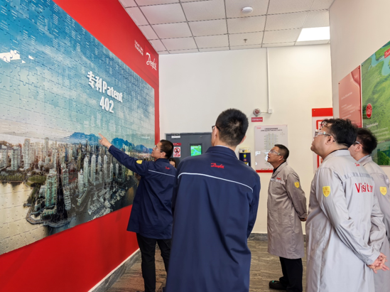 签约仪式结束后,学院一行三人,在丹佛斯(天津)有限公司商用压缩机中国研发负责人马福云、实验室高级经理段晨钧的陪同下,参观了丹佛斯(天津)有限公司生产线、标准实验室等。通过工作人员的介绍,了解了企业的发展历程、sm调教、产品范围和典型工程案例。随后与会人员围绕具体合作事项展开深入交流,碰撞出智慧的火花。大家积极建言献策,共同探讨合作细节与实施路径,力求让合作项目尽快落地生根、开花结果。