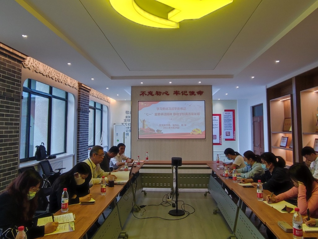 赵斌副校长提出,践行伟大的建党精神需要大家要做好四点工作:强化理论武装,在学习习近平新时代中国特色社会主义思想上下功夫;共同努力,做好立德树人工作;在社会主义践行伟大建设中,乘势而上,促进发展再上新台阶;共同推进党建和中心工作全面发展。